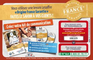 On propose à chaque boulanger, client de Lesaffre, de le faire savoir à leur client qu’ils ont pris le parti-pris de choisir un ingrédient de qualité « origine France Garantie » pour fabriquer leur pains et viennoiseries.